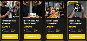 Betcio Görev Yap Kazan ve Görev Bazlı Katılım Sistemi